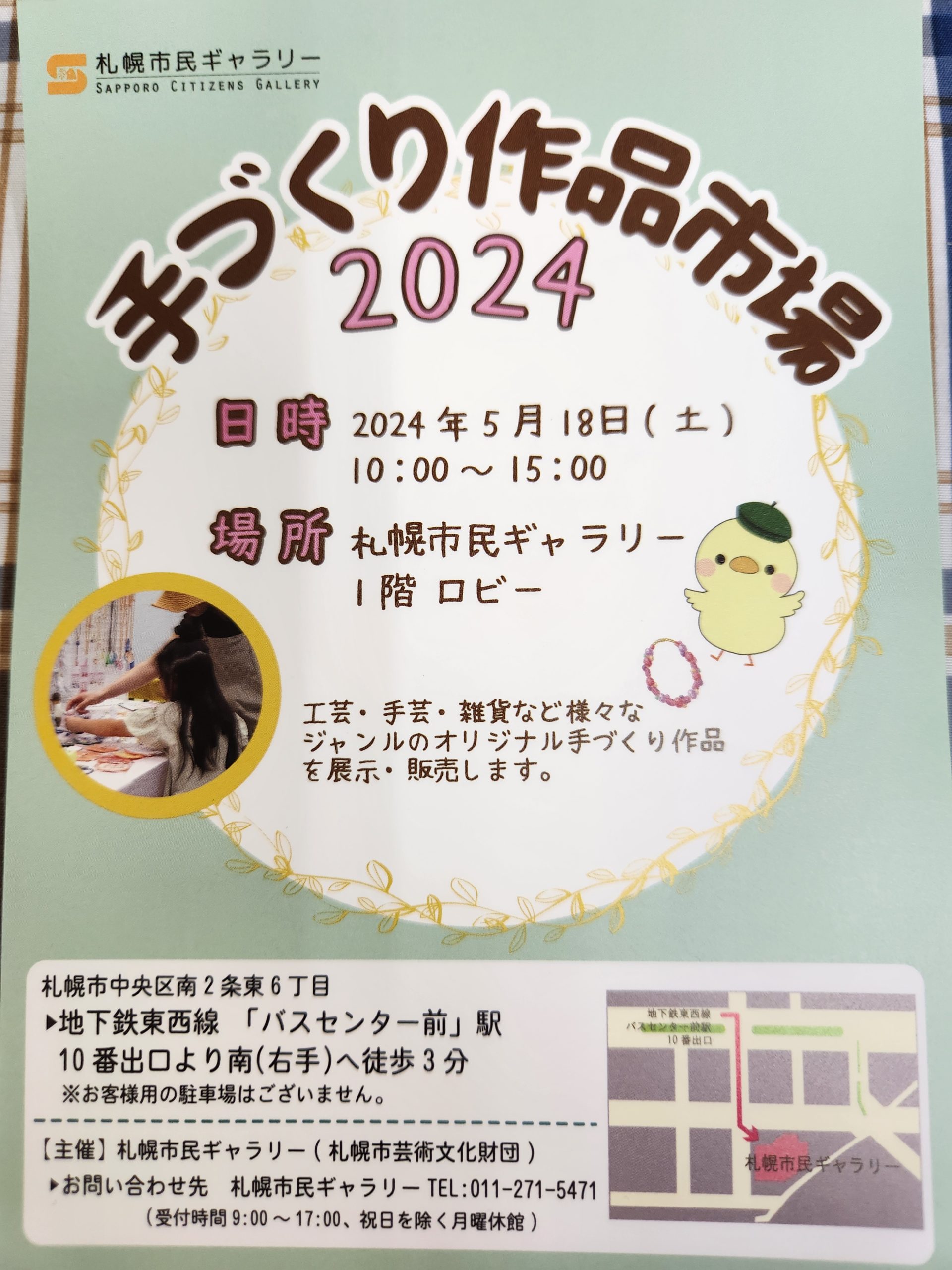 5月18日(土)バザー出品します。 その他 2024.05.12 札幌市民ギャラリーで行うバザーに参加します。 市民ギャラリーには初めて参加するのですが、只今みんなで作品を作っています。 お時間があれば見に来ていただけると嬉しいです‼